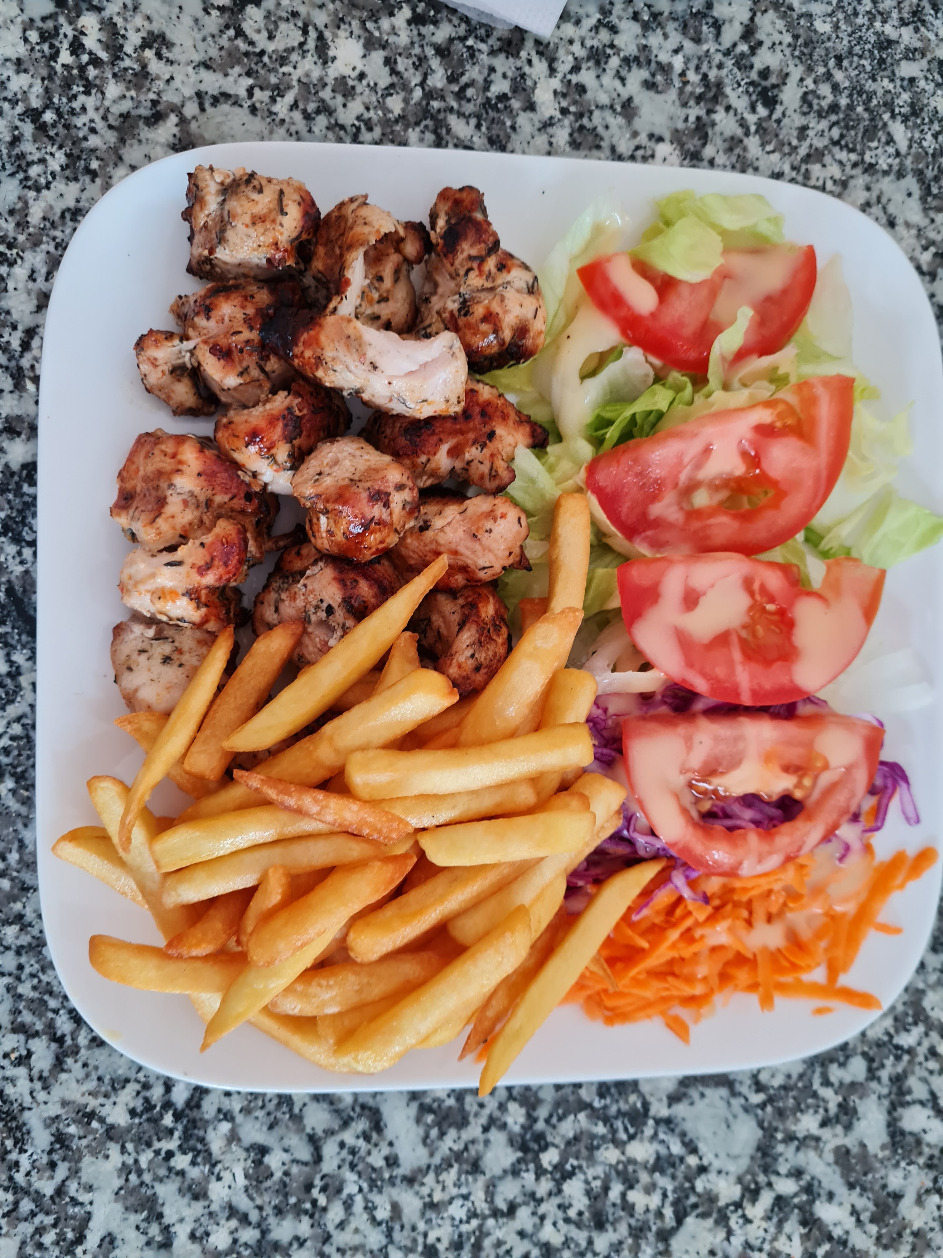 Il fait de très bonnes assiettes kebab et de très bons poulet cuit au feu de bois