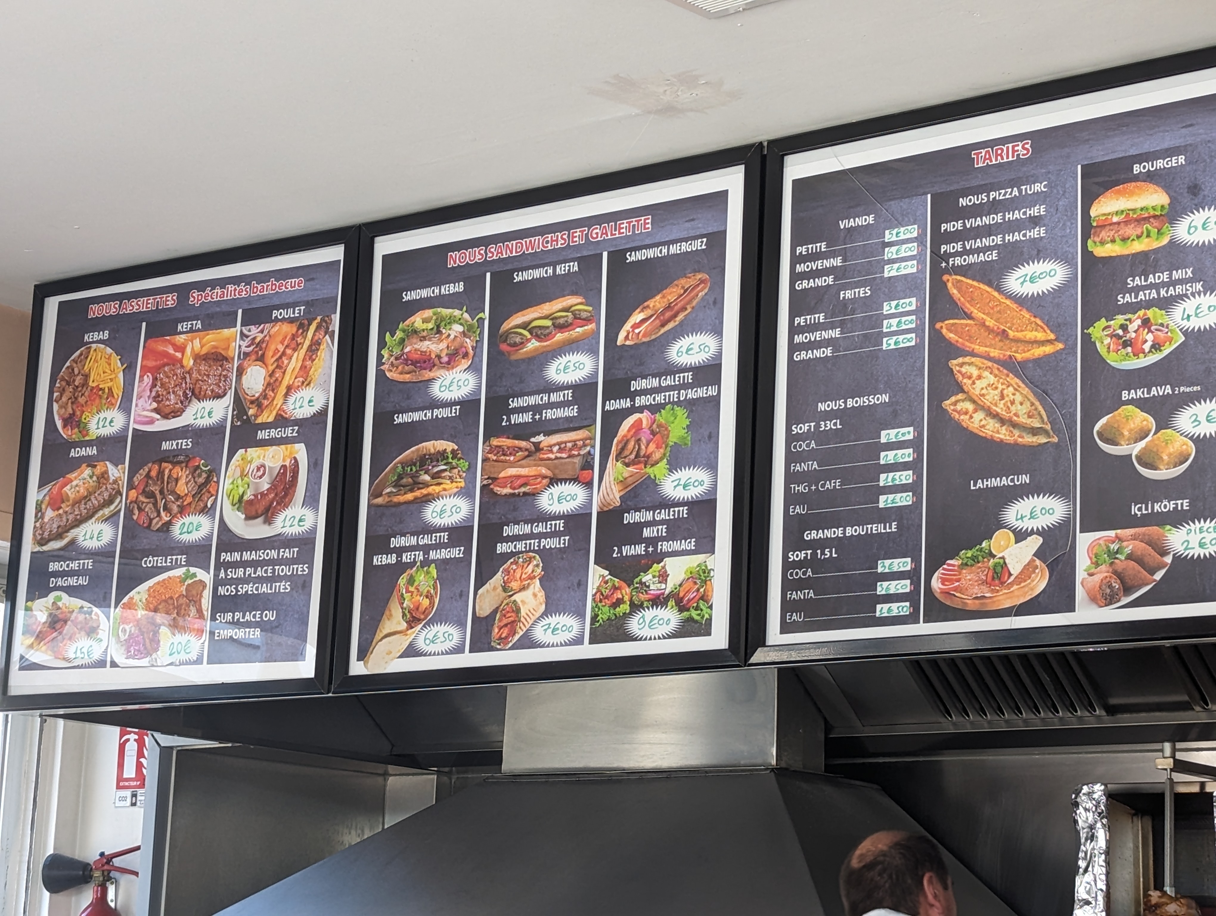 Arrivés récemment sur Saverne, mon époux et moi nous cherchions un bon kebab et nous avons découvert cette belle adresse récemment. Le patron est très sympathique et serviable. Mon époux a pris des brochette Adana car il aime les plats pimentés et il a adoré. J'ai pris des Koftas, elles étaient délicieuses, pleine de goût. Le patron fait lui même ses préparations. Le seul petit bémol, c'est le choix limité en crudités, pas de carottes râpées, ni de choux rouge. Par contre il propose du boulgour. Nous reviendrons goûter les autres spécialités turques qu'il propose. Petite info supplémentaire, penser à prendre de l'espèce car pour l'instant il ne prend pas la CB, ni les chèques.