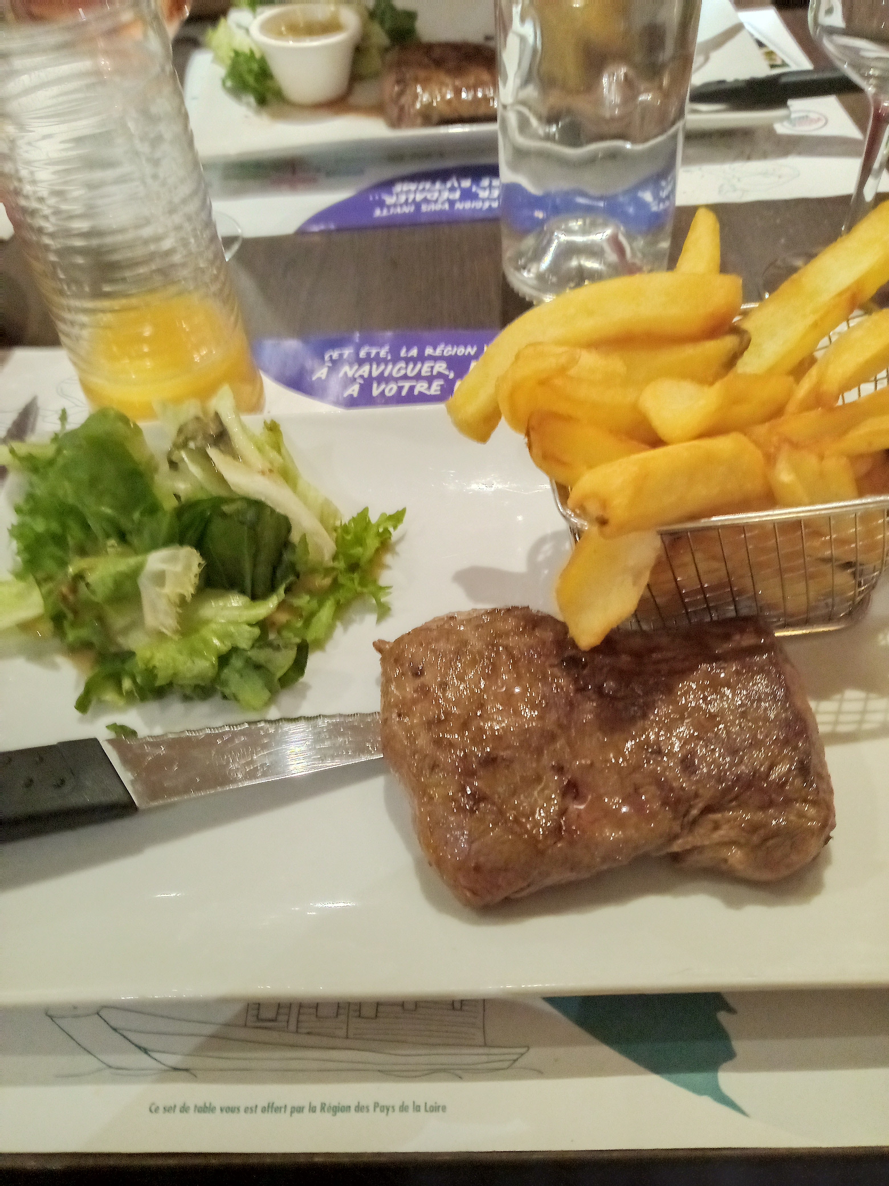 On ne vient pas chercher de la gastronomie dans un restaurant de ce type, on vient y manger un buffet, un bon morceau de viandes avec des frites ou encore un Burger. Pour ma part j’ai pris un pavé de bœuf sauce poivre accompagné de frites. C’était simple et efficace. Ma copine a pris un frenchburger, elle a également été totalement satisfaite. Enfin les serveuses ont le sourire, sont de bonne humeur et vous réserve un accueil chaleureux ce qui ce perd ces derniers temps dans d’autres restaurants. En conclusion, si vous ne cherchez pas une cuisine gastronomique mais simplement un bon repas, ce restaurant vaut le coup !